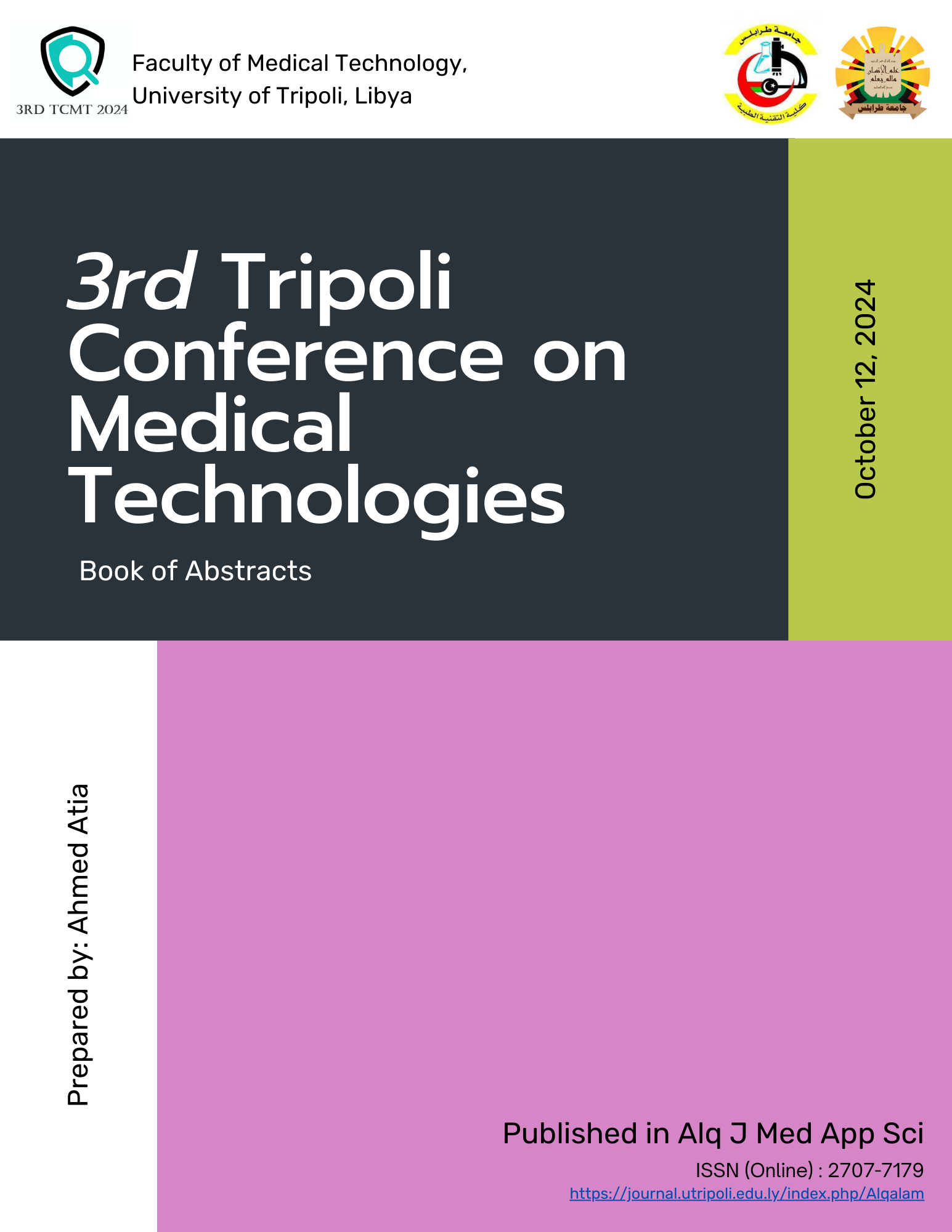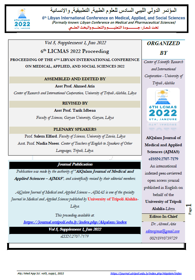 6th Libyan International Conference on Medical, Applied, and Social Sciences (Formally known: Libyan Conference on Medical and Pharmaceutical Sciences) is a multidplinary conference held by the University of Tripoli Alahlia under the theme of: Quality of teaching, learning and scientific research.