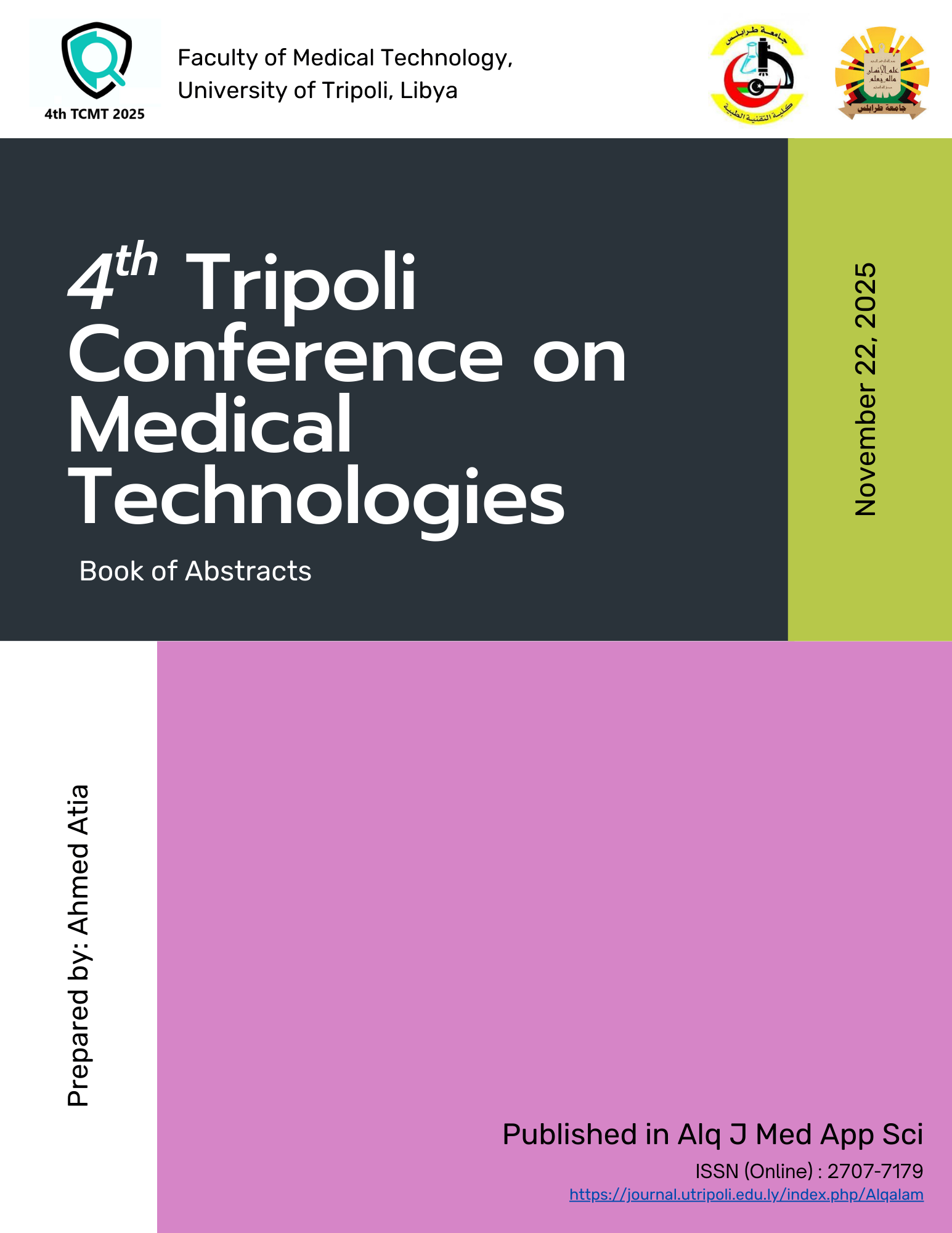 7th Libyan International Conference on Medical, Applied, and Social Sciences (Formally known: Libyan Conference on Medical and Pharmaceutical Sciences) is a multidplinary conference held by the University of Tripoli Alahlia under the theme of: Towards advanced education to achieve sustainable development.