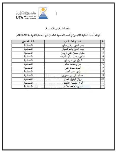 الطلبة المقبولين للدارسة بالجامعة بعد اجتيازهم امتحانات القبول