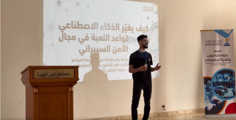في رحاب جامعة طرابلس الأهلية، أُقيمت يوم 15/4/2026 ورشة عمل مميزة بعنوان:"كيف يغيّر الذكاء الاصطناعي قواعد اللعبة في مجال الأمن السيبراني"الورشة شهدت حضوراً واسعاً وتفاعل مثمر من الطلاب والمتخصصين، حيث قدّم كل من:المهندس خالد مفتاح قمو – بورشة بعنوان "حرب العقول الاصطناعية: المدافعون ضد المهاج...